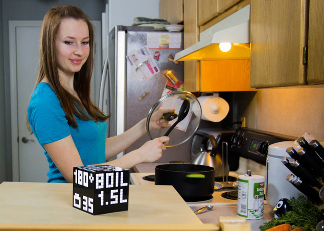 Use the cube as smart alarm in the bedroom or recipes handbook in the kitchen. Find out the current weather or time, without taking your phone out of your pocket.