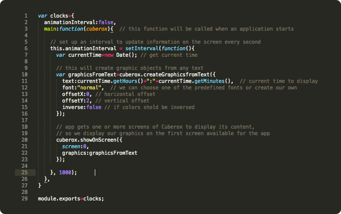 Here is an example of one of our apps to show time on Cuberox: